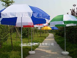 杭州百佳遮陽蓬有限公司專業(yè)生產(chǎn)太陽傘,傘骨采用彈簧鋼制作而成,表面防銹、噴塑加工。底座采用水桶、傘面通過防水抗老化處理的190D、210D、420D牛津布,各種規(guī)格均可訂做。傘面根據(jù)客戶要求印刷logo和文字,具有強烈的視覺效果。