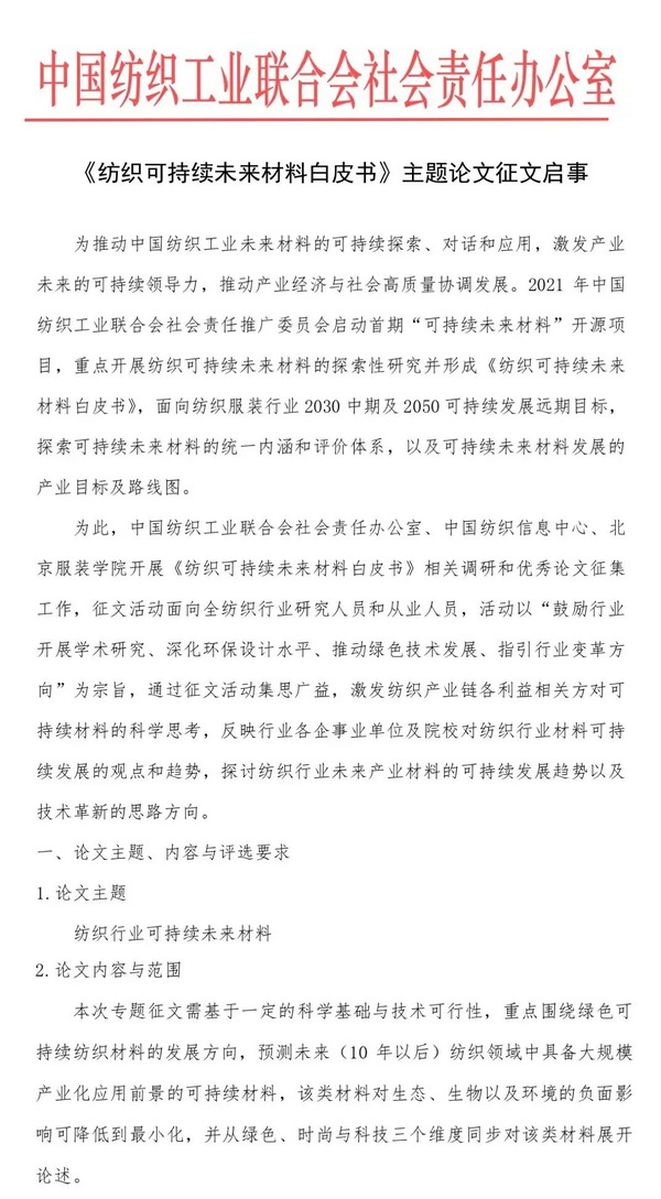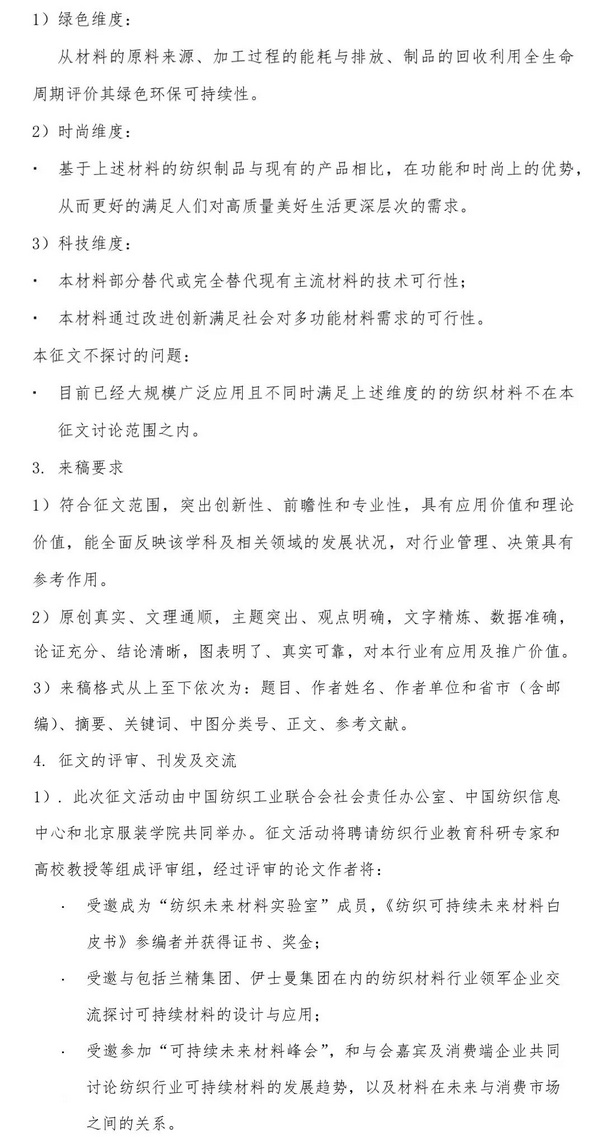 《紡織可持續(xù)未來材料白皮書》征文啟事